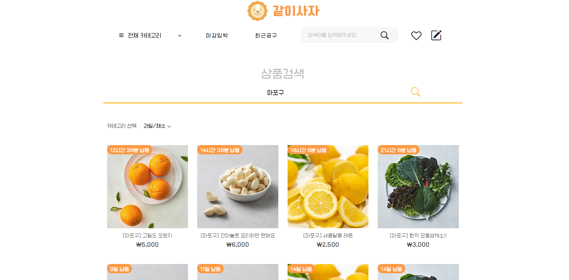 아래 사진은 『마포구』 검색 후, 카테고리 『과일/채소』를 선택했을 때이다.
