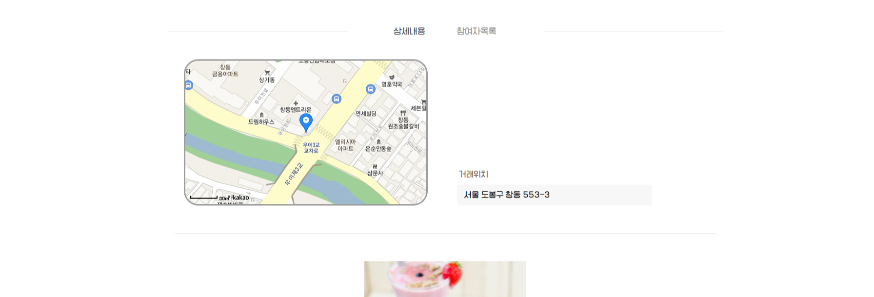 지도API를 이용해서 지도이미지로 정확한 위치를 보여준다. (확대 가능)