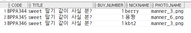 현재 이 딸기 게시물의 참여자 목록이다. (DB)
