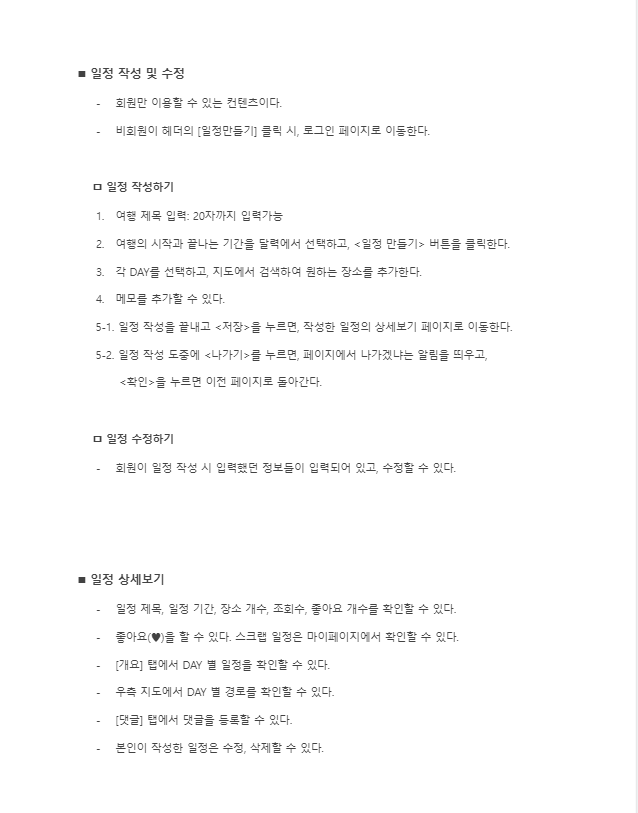 ✔ 요구분석서 완성: Google Docs로 팀원들과 함께 아래 예시와 같이 작성