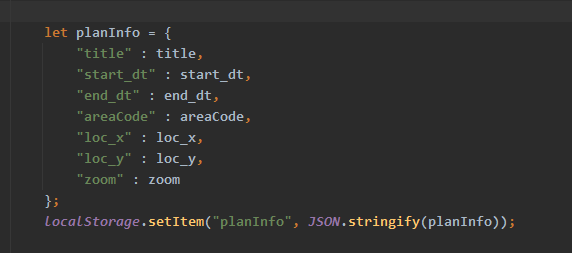 여행 일정을 작성 전 모달창에서 입력한 정보들을 저장해놓을거라 JSON 형태로 보냈다.