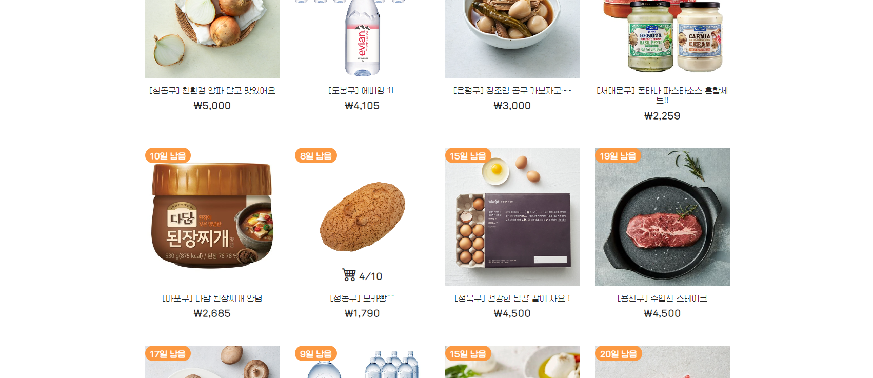 이런식으로 공동구매 목록들을 띄울 것이다.
