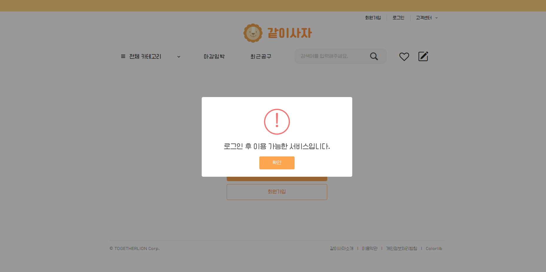 - 비회원이 누를 경우, 로그인폼+안내메세지 팝업