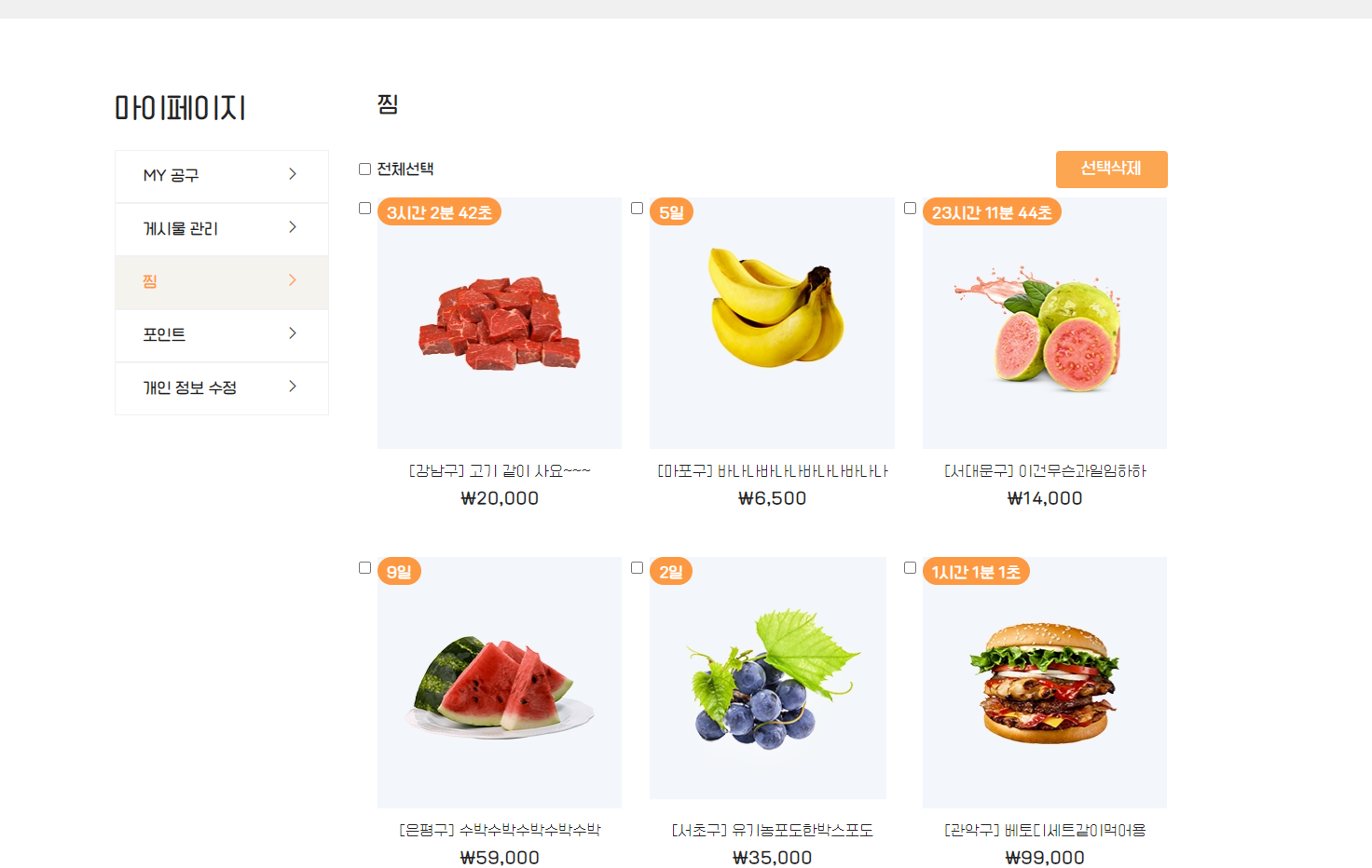 공동구매 상세보기 마지막 버튼을 하기 전에, 찜을 한 김에 마이페이지>찜 부분을 먼저 하려고 한다.