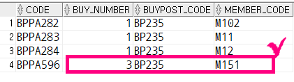 WHERE BUYPOST_CODE = V_BUYPOST_CODE AND MEMBER_CODE = V_MEMBER_CODE