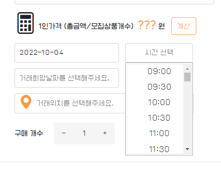 거래희망시간 부분은 위에서 바로 한 모집마감시간과 아예 동일하니 코드와 사진은 생략! ㅎㅅㅎ