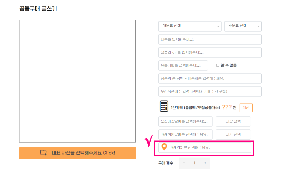 드디어 공동구매 게시물 작성폼...!!!