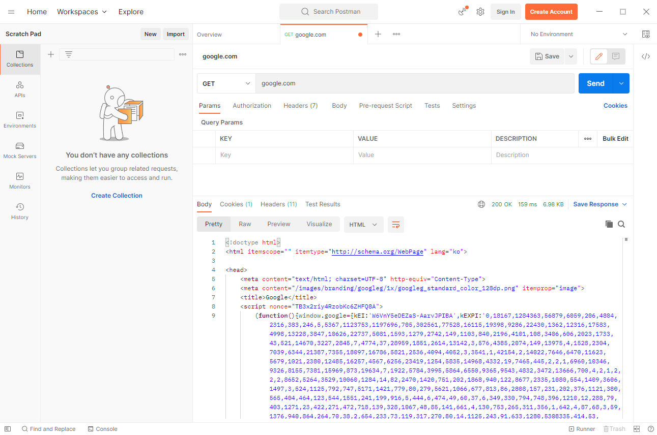 → Postman을 통해서 google.com 서버에 요청해서 아래와 같은 데이터를 받은 것이다.