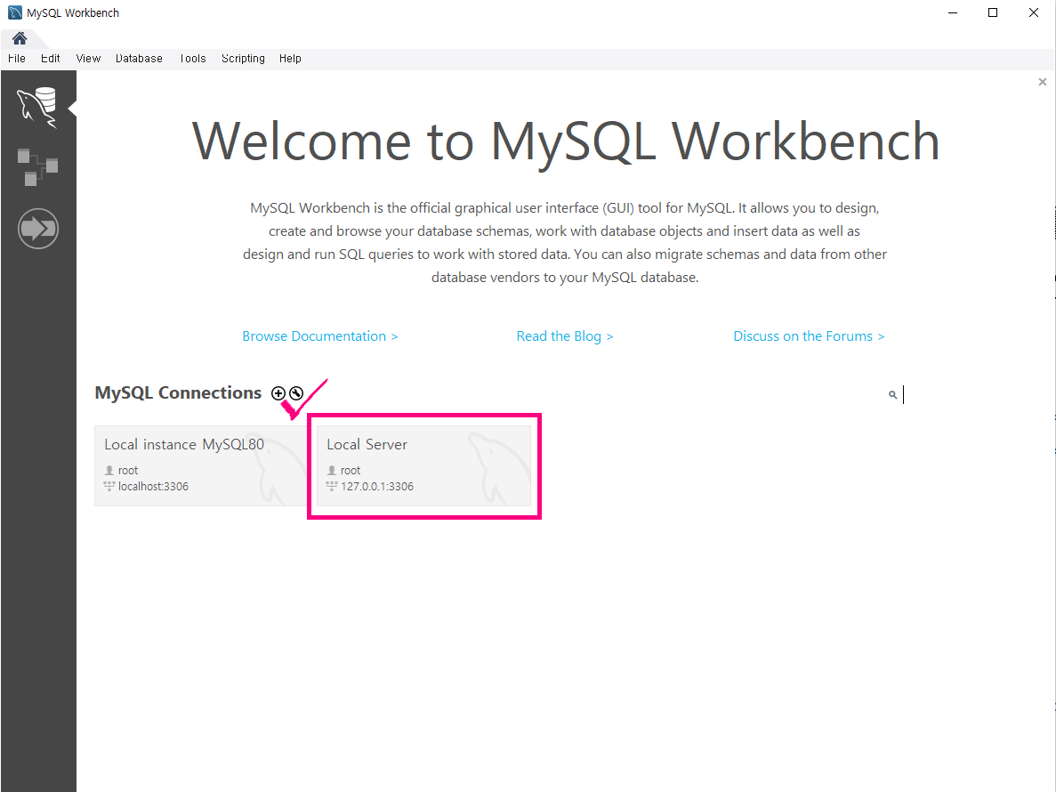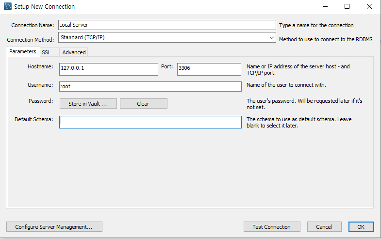 설치한 Server에 접속할 수 있는 새로운 Connection을 만들자