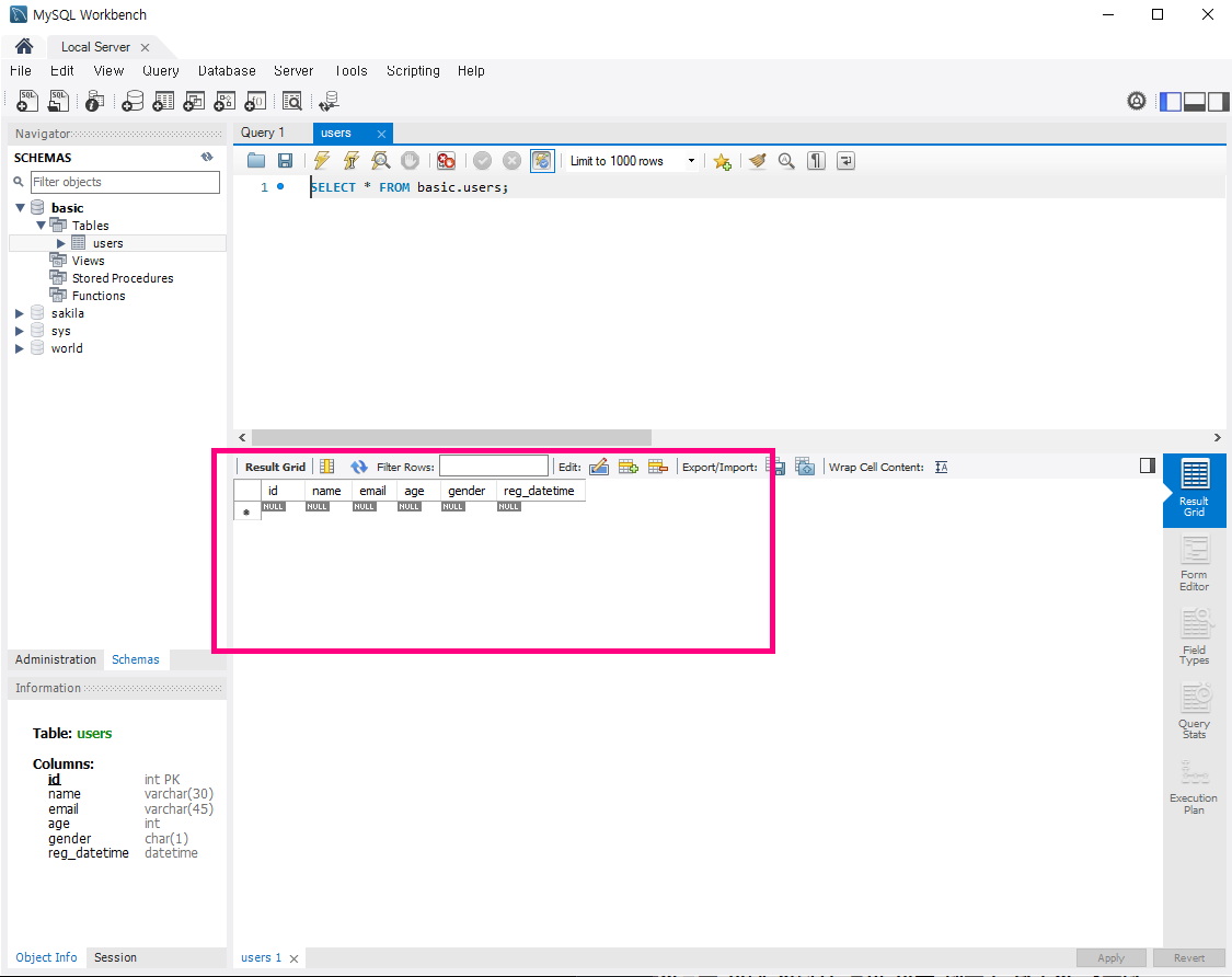 +) Select Rows - Limit 1000: 1000개의 데이터를 뽑겠다는 의미